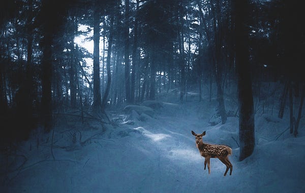 | Fawn in a Blue Winter Wood |