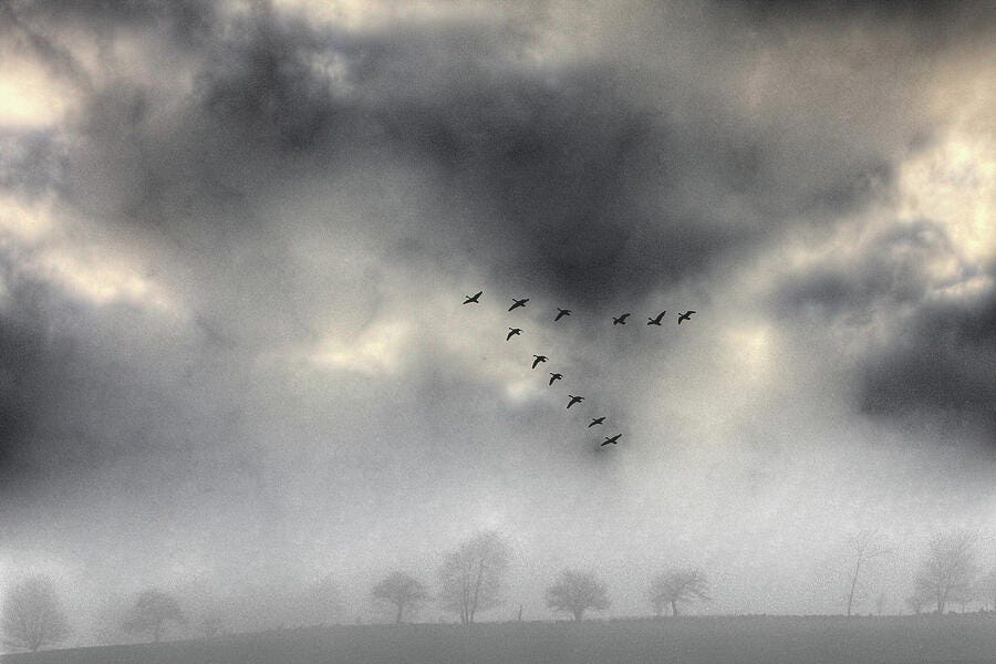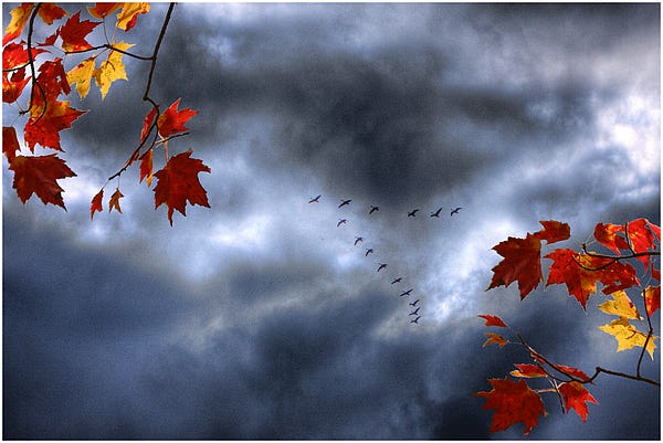 | Blue Geese in a Red October Sky |