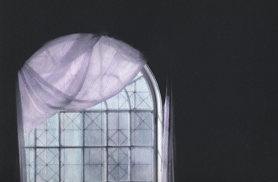 | Pink Curtain in an Arched Window |