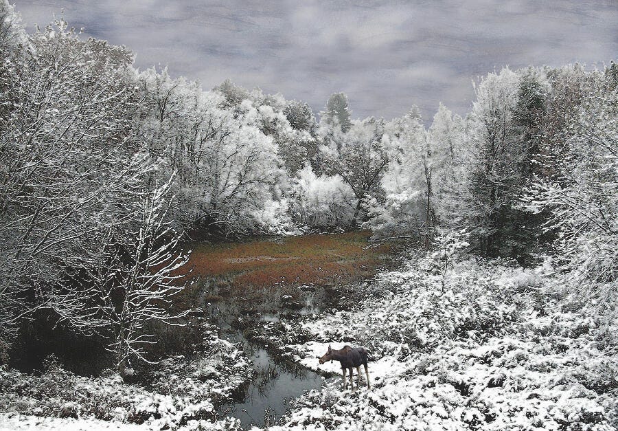 Lone Moose on a Snowy Oxbow